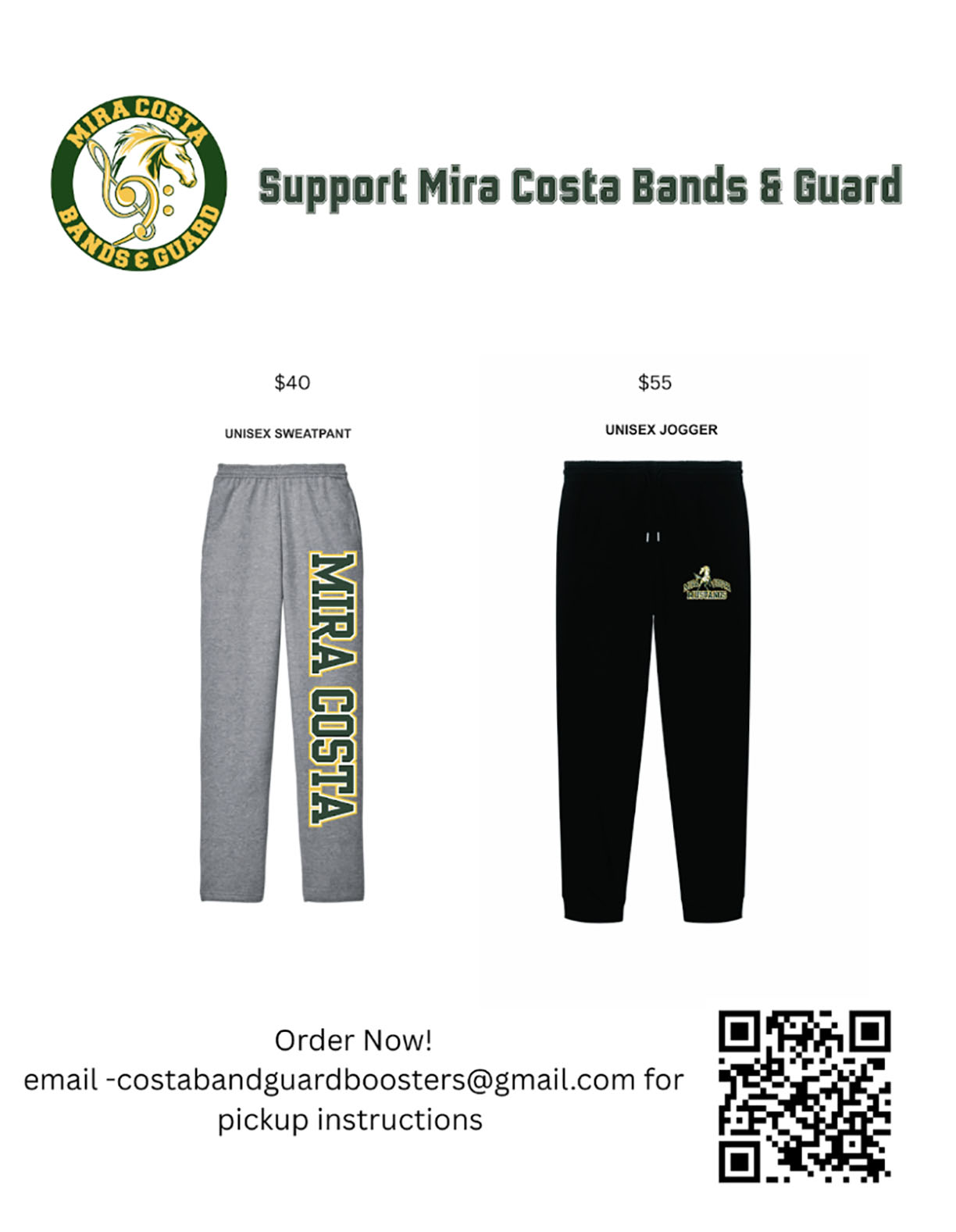 MCHS SWEATPANTS – Supporting Bands and Guard Screenshot If you need another size, please contact costabandsguard@gmail Purchase here View the flyer