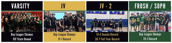 Varsity finished the regular season 28-3, clinching the Bay League title (7-1) and are riding a six-game winning streak as they power through D1 CIF playoffs. The team also earned a spot in the CIF State Championship Tournament, kicking off on March 4.