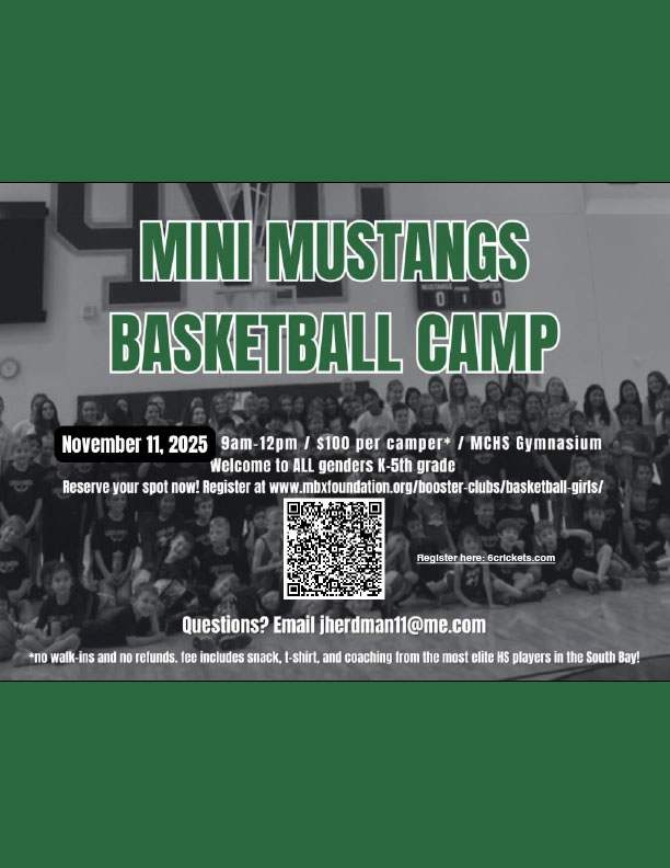 Mini Mustangs Basketball Camp Supporting Girls BB – 11/11/25 unspecified Please join us for the annual Mini Mustangs Basketball Camp for all genders grades K-5 Ages: all genders grades K-5 / Register here / View the flyer