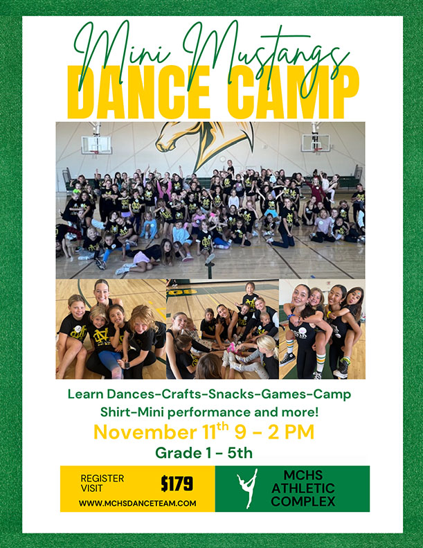 Enjoy the day spending time with members of our Mira Costa Dance Team on November 11, 2025 from 9:00am-2:00pm for Grades 1st-5th. Learn dances, make crafts, play games, snacks, receive a camp shirt and mini performance at the end of the camp day.
