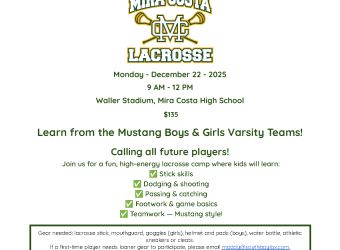 Join MCHS Boys and Girls Varsity Lacrosse for a fun, high-energy lacrosse camp!, Monday, December 22, 2025, from 9 am-12 pm. Ages: Grades K-8 / Register here / View the flyer