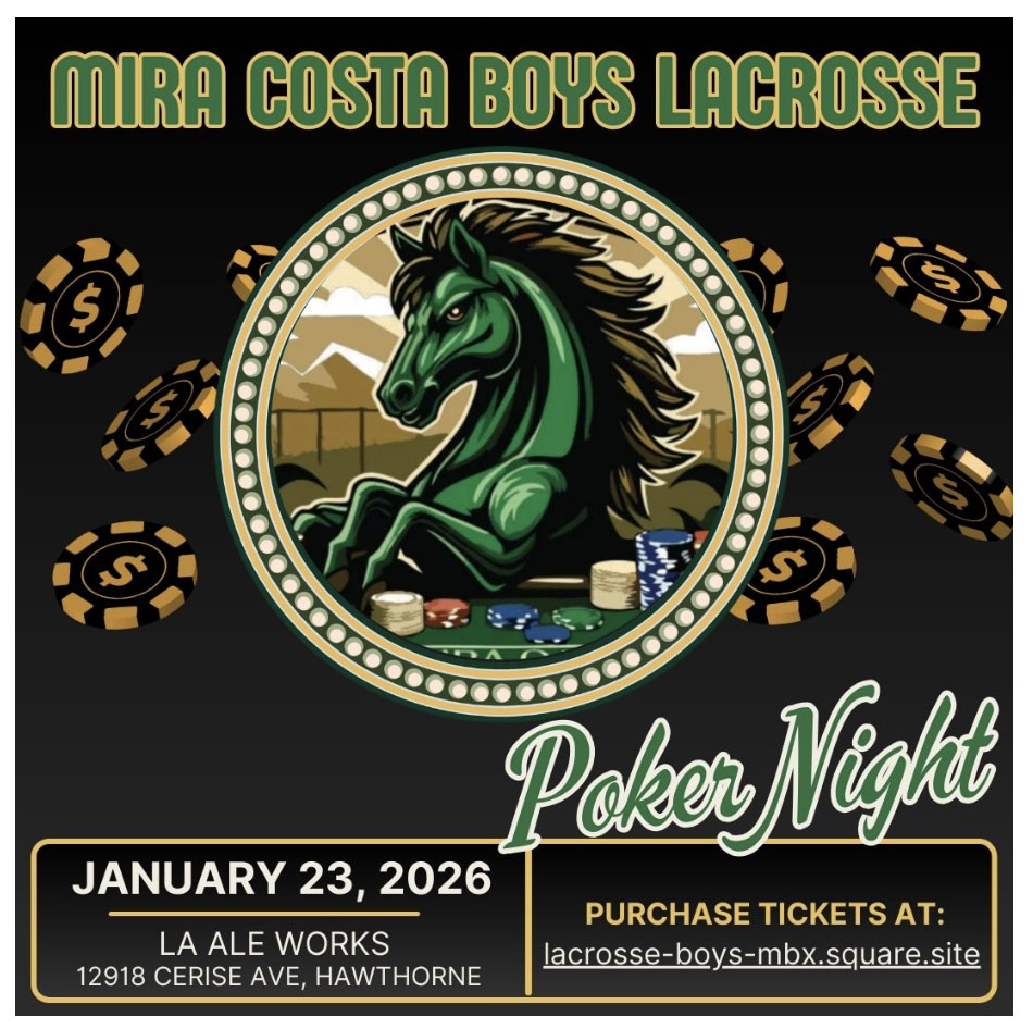 3rd Annual Texas Hold’em Poker Tournament Fundraiser 1/24/25 – Supporting Boys and Lacrosse Screenshot Time: 6pm check-in, tournament starts at 7pm. Sign up NOW… tournament limited to 90 adult only players! Register here / View the flyer