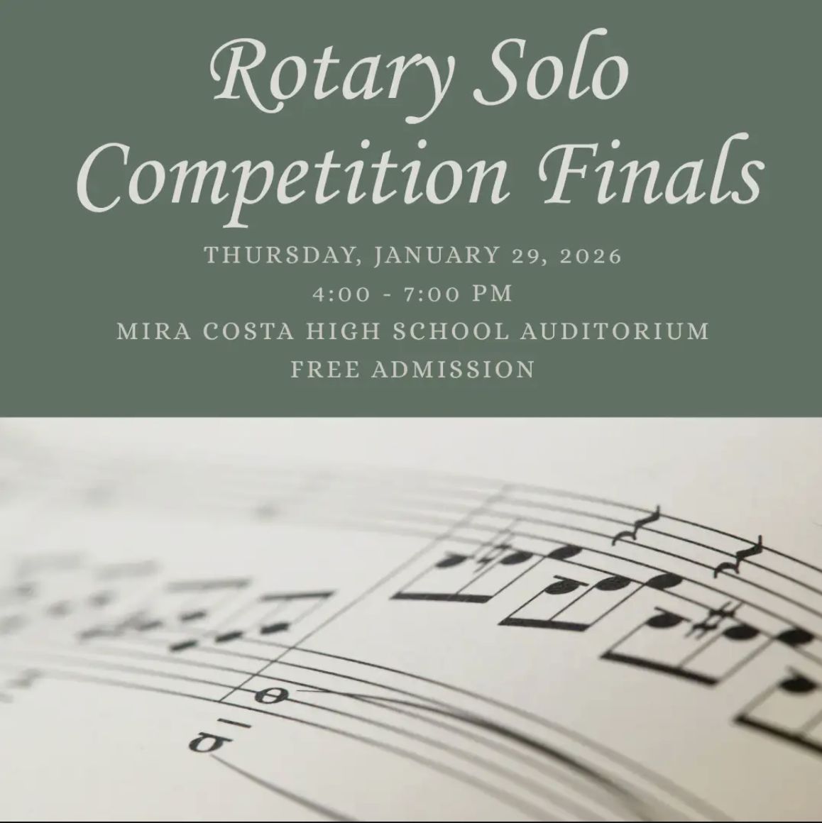 Congratulations to all string Rotary Solo Competition winners. All award winners will be recognized at the Rotary Awards Breakfast on March 30th at the Westdrift. Additionally, the first-place winners of each division will reprise their solo performances at this event.