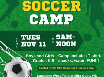Come kick it with the Mira Costa Boys Soccer team for a fun and energetic half-day camp! Join us on Tuesday, November 11 from 9 AM to noon—open to all students in grades K-5th grade. Spend the morning enhancing your soccer skills through age-appropriate drills and scrimmages. It’s a high-energy,…