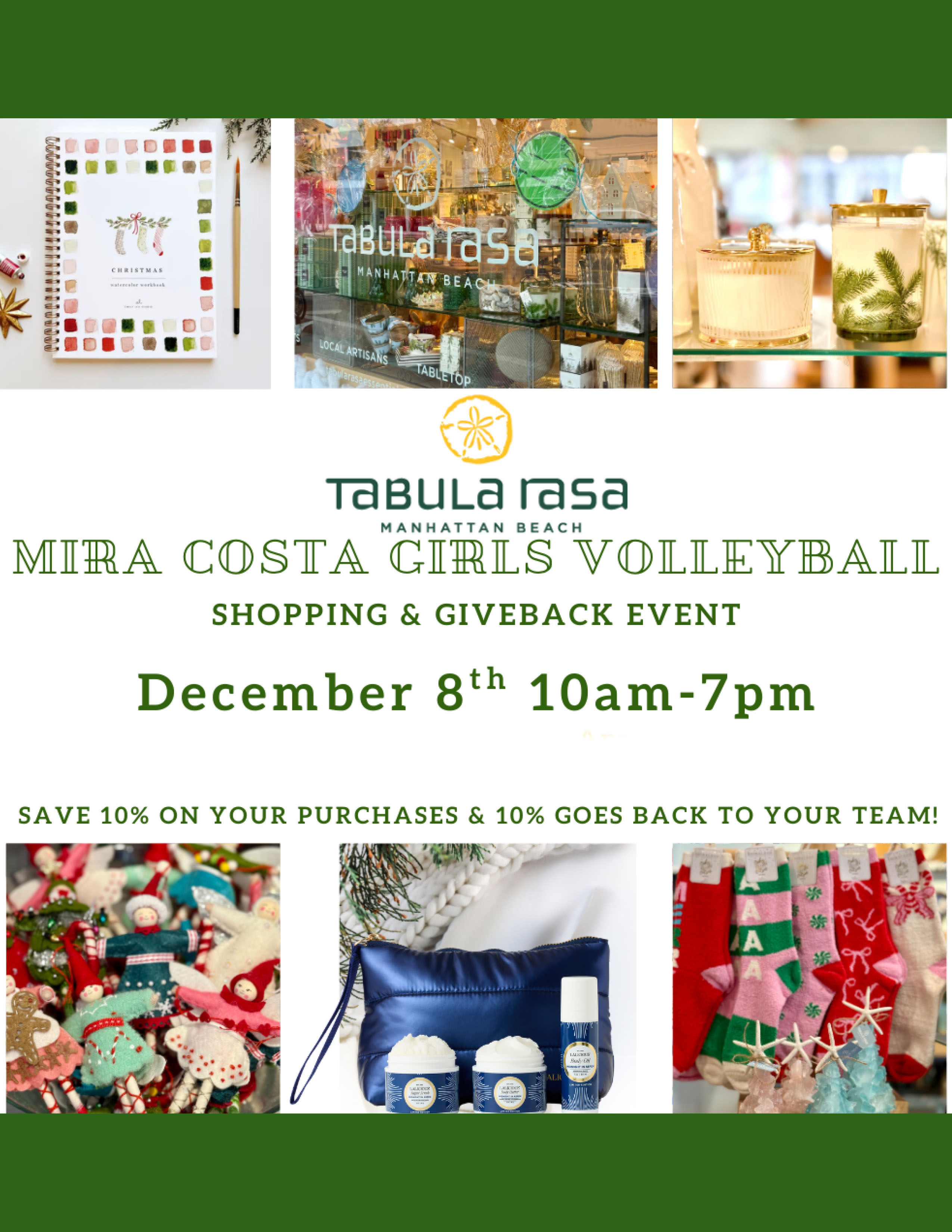 Shop and Give Back at Tabula Raza Fundraiser on Monday, December 8 from 10am to 7pm. Save 10% on purchases, and 10% goes back to the team. View the flyer.