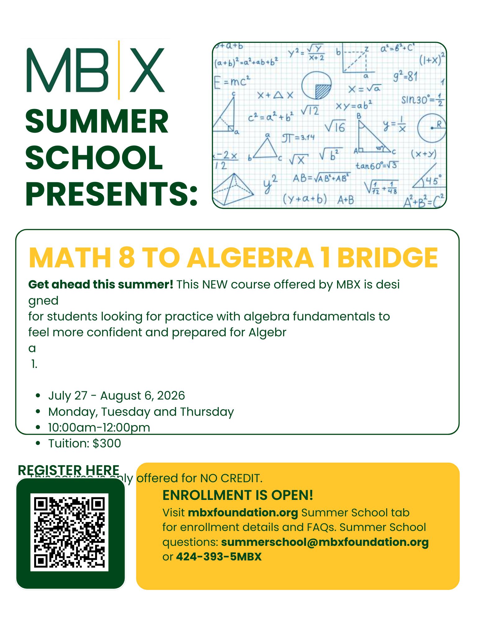 MBX Summer School Presents – Math 8 to Algebra 1 Bridge
