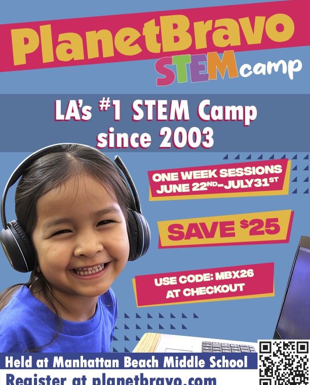 The Manhattan Beach location is held at Manhattan Beach Middle School. Camp runs 9am-3pm M-F in one-week sessions. After care is available until 5:30pm.
