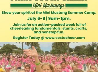 Show your spirit at the Summer Mini Mustang Camp at Mira Costa High School. Join us for an action-packed week full of cheerleading fundamentals, stunts, crafts, and nonstop fun. GO COSTA!!! Ages: 4-12 / Register here / View the flyer